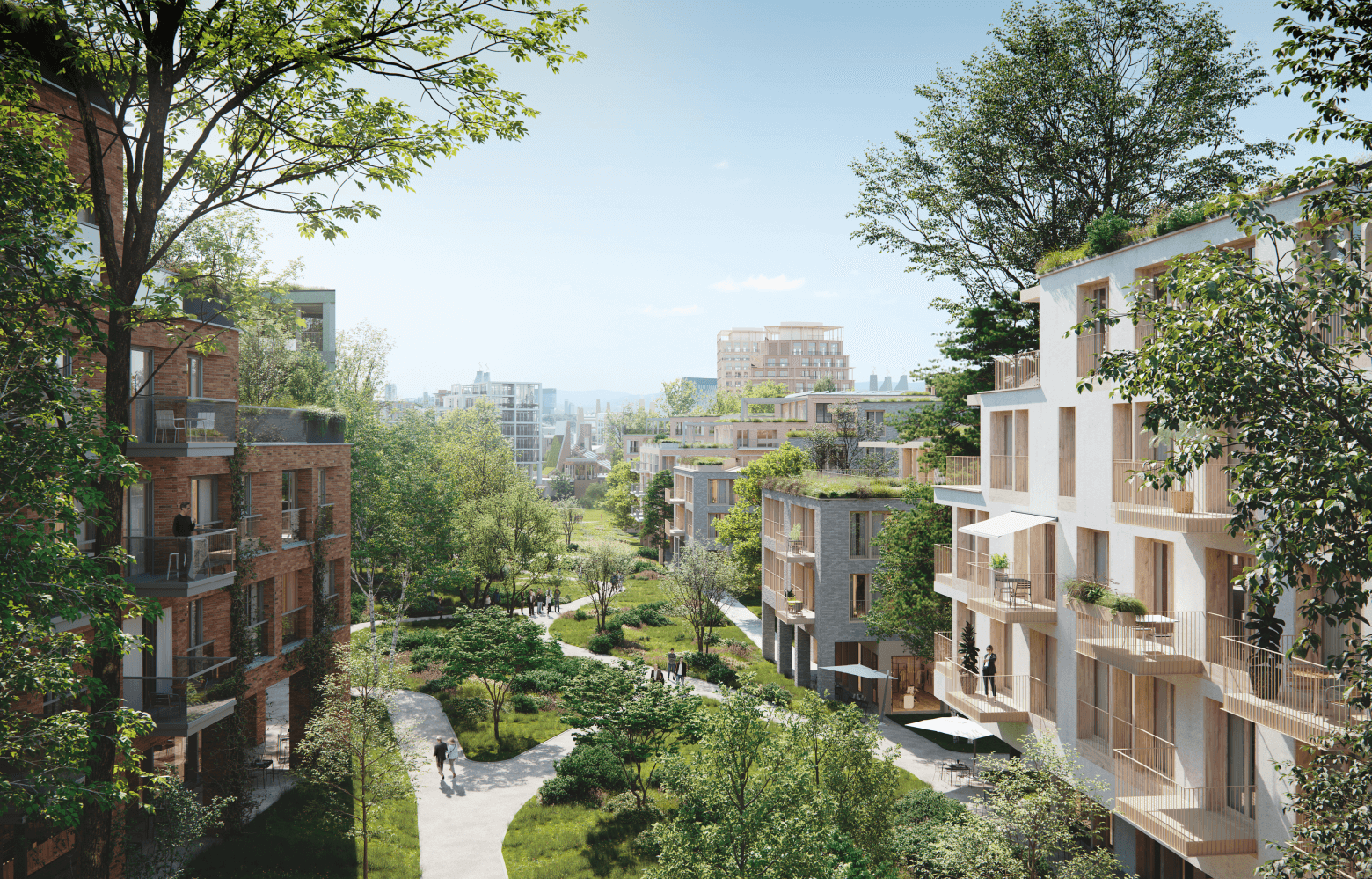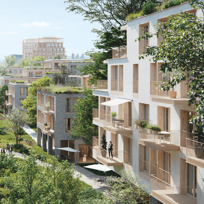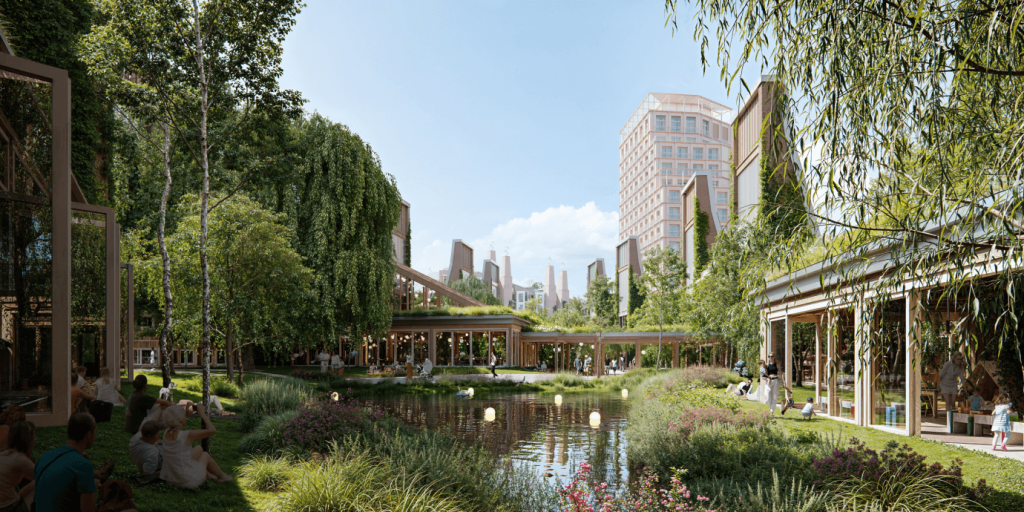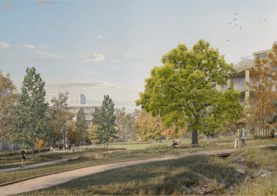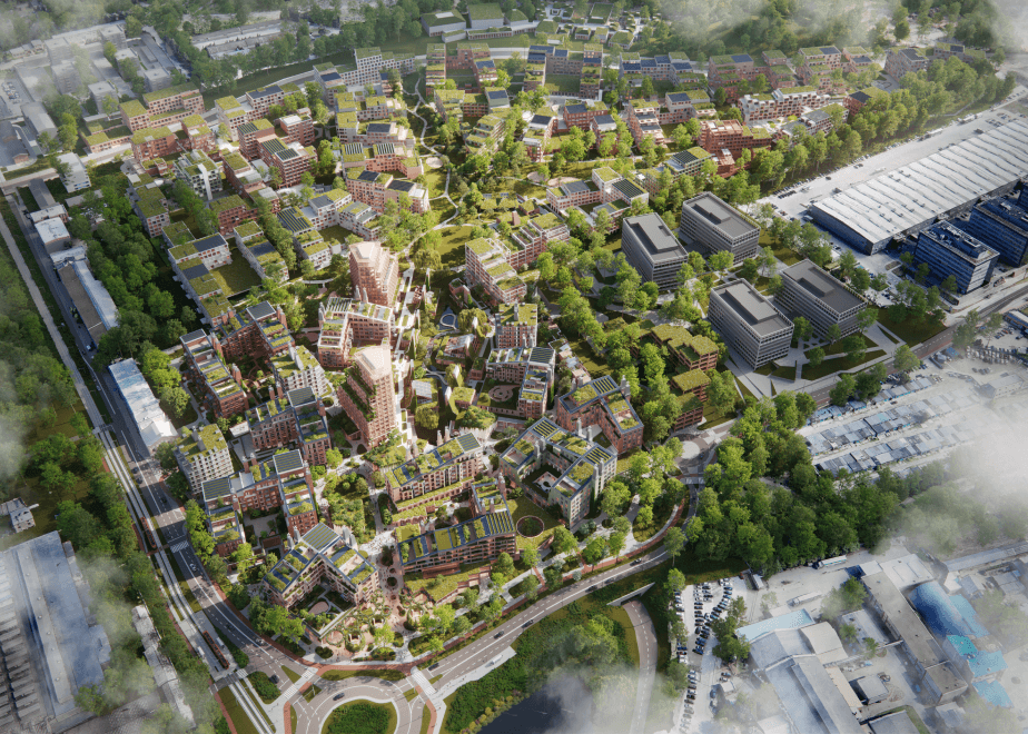 Dzięki przeniesieniu ruchu samochodowego do części podziemnej w projekcie zmaksymalizowane zostały tereny zielone, w tym park centralny oraz skwery, place, łąki kwietne, trawniki, strefy leśne – tworzące bezpieczną i przyjazną przestrzeń dla wszystkich.